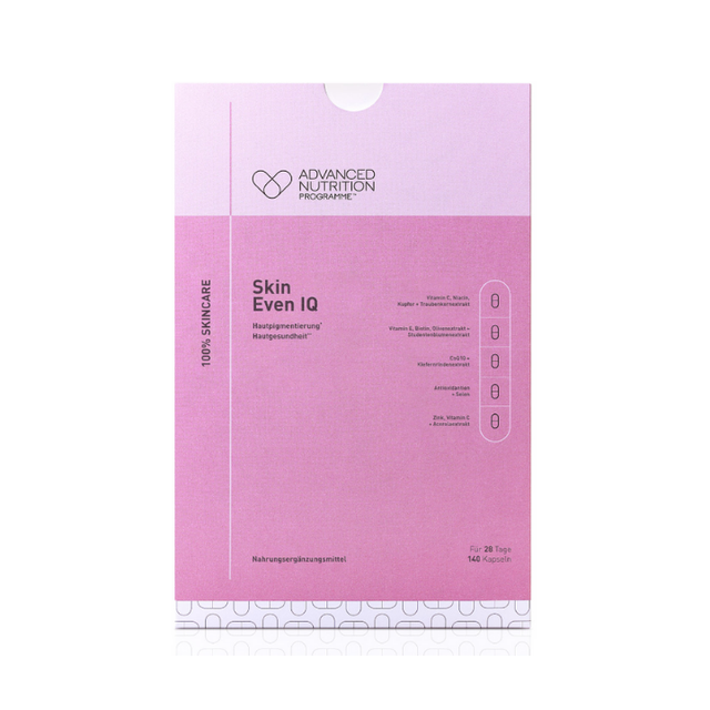 Skin Even IQ ist ein speziell entwickeltes Nahrungsergänzungsmittel, das die Hauthelligkeit unterstützt und zu einem gleichmäßigen Teint beiträgt. Es enthält eine ausgewogene Mischung aus Vitamin C, Zink und Antioxidantien, die die Hautgesundheit von innen fördern.